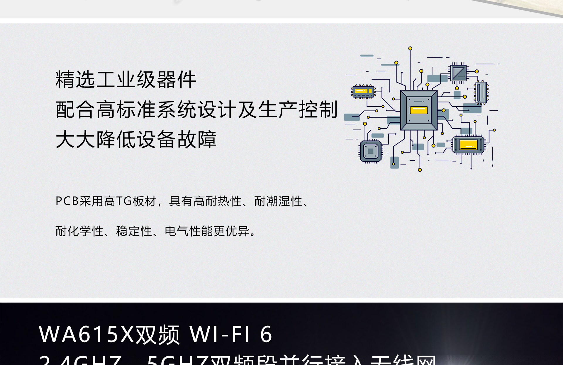 LEDs | 1x电源灯 2x网口灯 1x5G wifi 灯 1x2.4G wifi 灯 | |||