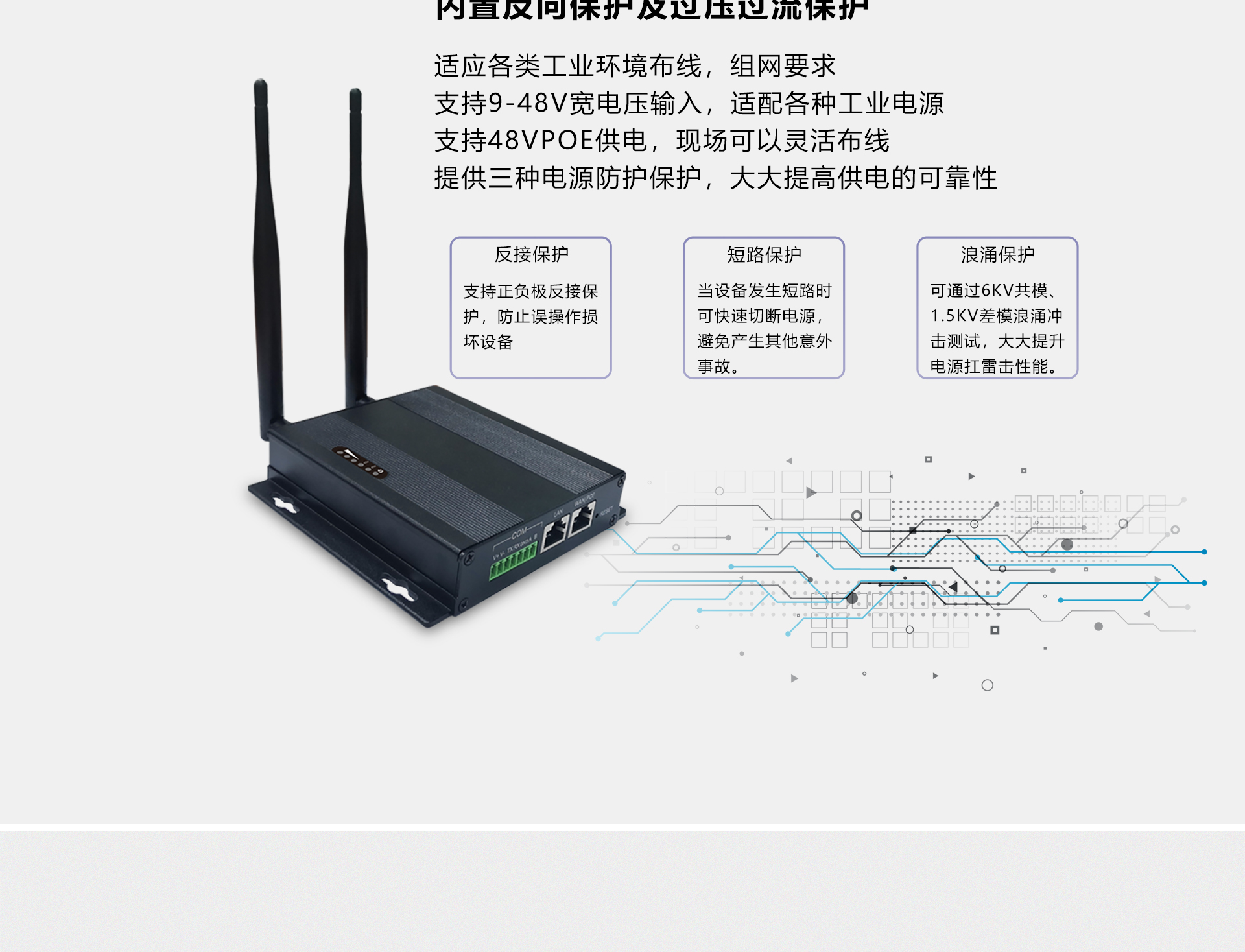 防护等级 | 共模6KV,差模2KV,15KV ESD | |||